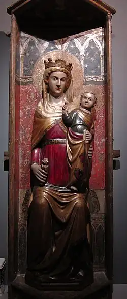 - Vierge à l'Enfant, bois sculpté et peint, provenant de l'église Santa Maria ad Cryptas de Fossa, Museo Nazionale d'Abruzzo,