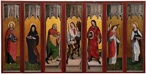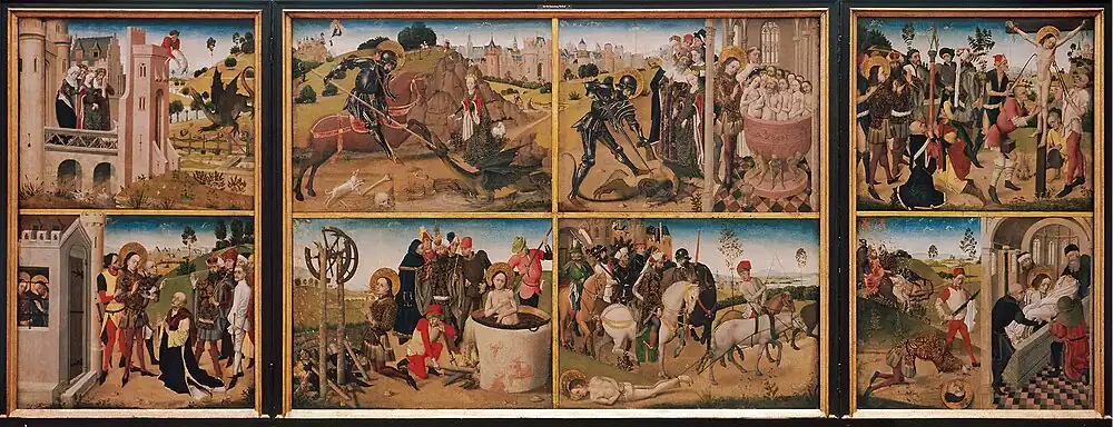 Triptyque de la Légende de saint Georges (Wallraf-Museum, Cologne) Sept panneaux d'un polyptyque (ibid.) |