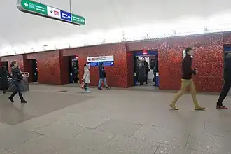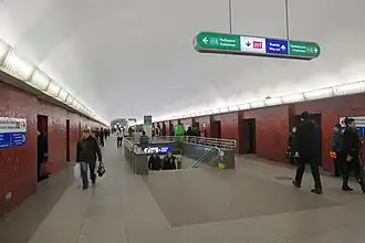 La station dispose d'un accès principal avec un hall en surface, en relation avec le quai par un tunnel en pente équipé de trois escaliers mécaniques aboutissant à l'ouest du quai. Station de correspondance elle comprend à l'est du quai une relation directe, par quatre escaliers mécaniques, avec le centre du quai de la station Plochtchad Vosstania. Par ailleurs au centre du quai deux escaliers fixes descendent dans un tunnel piétonnier rejoignant le sud du quai de la station Texte en italiquePlochtchad Vosstania et rejoignant un hall en surface par un tunnel en pente équipé de trois escaliers mécaniques[1].