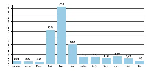 Hydrométrie - Les débits mensuels à Verkhni Maïzas