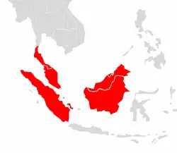 Asie du Sud-Est., à Bornéo et à Sumatra, en Malaisie et à Brunei et en Thaïlande.
