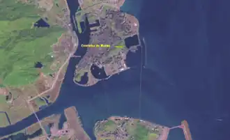 Les îles qui formaient le territoire ont été peu à peu reliées entre elles, soit par des ponts, soit par des terre-pleins. La première digue reliant l'Ilha verde à la péninsule fut construite entre 1890 et 1892[30] et celle reliant Taipa à Coloane date de 1968. Le premier pont entre la péninsule et Taipa, le pont du gouverneur Nobre de Carvalho, date de 1974.