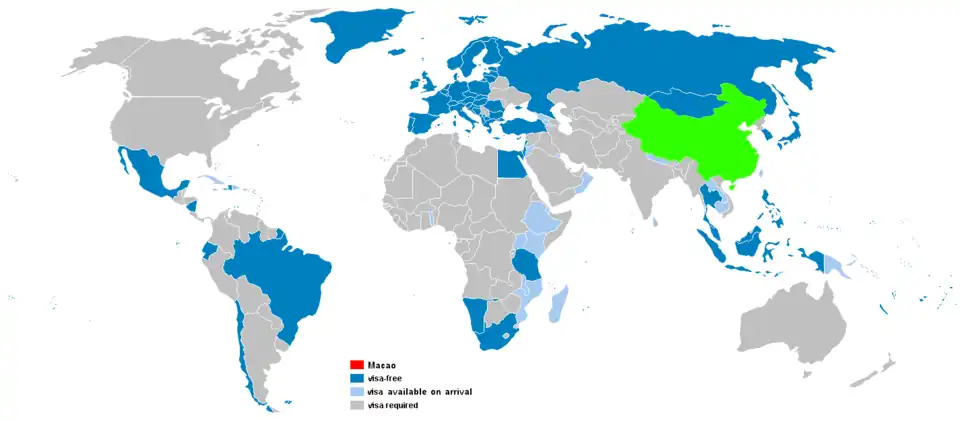 - ↑ « Procédures d'entrée », sur macautourisme.com, Office du tourisme de Macau (consulté le ).