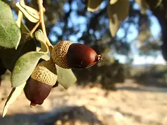 Les glands du chêne vert constituent une part importante du régime alimentaire du macaque berbère.