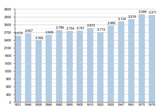 - Sources : INS, Rem. : 1831 jusqu'en 1970 = recensements, 1976 = nombre d'habitants au 31 décembre[2].