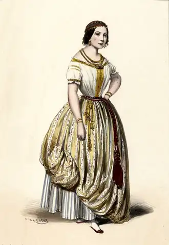 Portrait de Madame Mélingue en costume pour Ève, lithographie de Victor Dollet