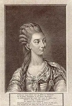 Elle est la destinataire de l'Épître à une Jolie Lesbienne publiée en 1779 dans les Mémoires secrets pour servir à l'histoire de la République des Lettres en France depuis 1762 jusqu'à nos jours de Mathieu-François Pidansat de Mairobert[53].