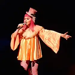 - ↑ (en) Lachlan Kanoniuk, « Madonna joue au clown après trois heures de retard, lors spectacle de Melbourne »