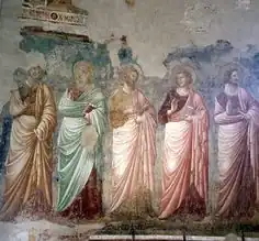 - Crucifixion et Apôtres (1320-1330), cycle de fresques de l'abbaye de San Pietro in Sylvis, Bagnacavallo, Émilie-Romagne.