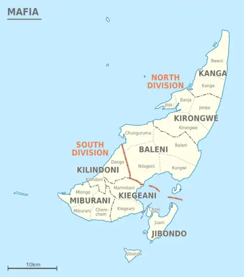Mafia, en swahili Kisiwa cha Mafia, est une île de Tanzanie située dans l'océan Indien à 135 km au sud-sud-est de l'île d'Unguja (archipel de Zanzibar). Mafia fait partie de la région de Pwani dont elle constitue l'un des six districts.