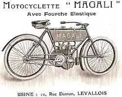 La société Gayon et Cie de Levallois-Perret commence à produire des automobiles et des motos en 1905, commercialisées sous le nom de Magali. La production a pris fin en 1906.