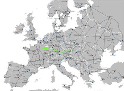 Ce projet transeuropéen est quasiment identique au projet no 17 (Paris - Bratislava) de la convention sur le réseau transeuropéen de transport adoptée en 1996, à ceci près qu'il est effectivement commencé. Budapest se trouvera ainsi à l'est de cette ligne transeuropéenne.