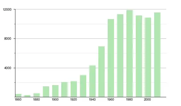 | 1960 | 10 651 | ▲ +53,96 % | |