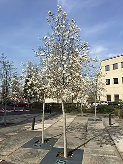 Ils donnent des fleurs parfumées blanches avec des notes de rose pâle au début du printemps. Les fleurs sont produites avant les feuilles, comme la plupart des membres du sous-genre Magnolia Yulania. Les jeunes arbres ne fleurissent pas.