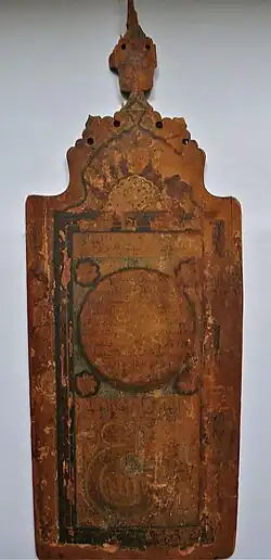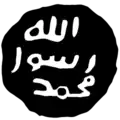 Les plus anciennes données matérielles qui mentionnent « Muḥammad » remontent à une cinquantaine d'années après la mort de Mahomet[42] : en 685 (an 66 de l'hégire) sur une drachme arabo-sassanide, en 691 (71 AH) sur une pierre tombale égyptienne et en 692 (72 AH) sur une inscription figurant sur le dôme du Rocher de Jérusalem[43]. Selon Volker Popp, en comparaison d'autres pièces similaires portant ces lettres et des représentations chrétiennes, le terme Mhmd de la pièce de monnaie arabo-sassanide ne désigne pas Mahomet mais se traduit par « le béni », terme utilisé pour désigner Jésus[44]. Cette thèse est reprise par Karl-Heinz Ohlig[45],[Note 15]. De même, certaines inscriptions du dôme du Rocher seraient issues de la phrase biblique : « Béni soit celui qui vient au nom du Seigneur », le béni signifiant Jésus[46].