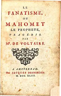 253. Voltaire, Le Fanatisme ou Mahomet le prophète (1741), Œuvres complètes, éd. Garnier, 1875, tome 4, p. 135.