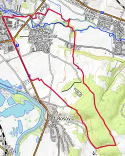 - ↑ « Maillot, carte interactive » sur Géoportail. Couches « Cartes IGN classiques » et « Hydrographie » activées. Vous pouvez bouger la carte (cliquer et maintenir, bouger), zoomer (molette de souris ou échelle sur l'écran), moduler la transparence, désactiver ou supprimer les couches (= cartes) avec leurs échelles d'intensité dans l'onglet de "sélection de couches" en haut à droite, et en ajouter depuis l'onglet "Cartes" en haut à gauche. Les distances et surfaces se mesurent avec les outils dans l'onglet "Accéder aux outils cartographiques" (petite clé à molette) sous l'onglet "sélection de couches".