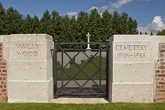 Le cimetière de Mailly Wood a été commencé avec l'inhumation de treize hommes du 2e Seaforth Highlanders tombés le 25 juin 1916.