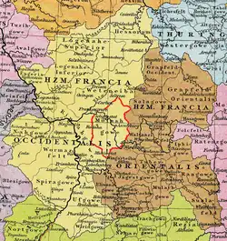 - Die Gaue nach 900. Geschichtlicher Atlas von Hessen. In: Landesgeschichtliches Informationssystem Hessen (LAGIS).