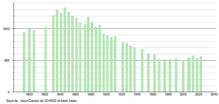 - ↑ Fiches Insee - Populations de référence de la commune pour les années 2006, 2007, 2008, 2009, 2010, 2011, 2012, 2013, 2014, 2015, 2016, 2017, 2018, 2019, 2020, 2021 et 2022.