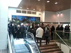 La station accueille une œuvre d'Hugues Reip[14],[15], tant dans les couloirs que sur les quais.