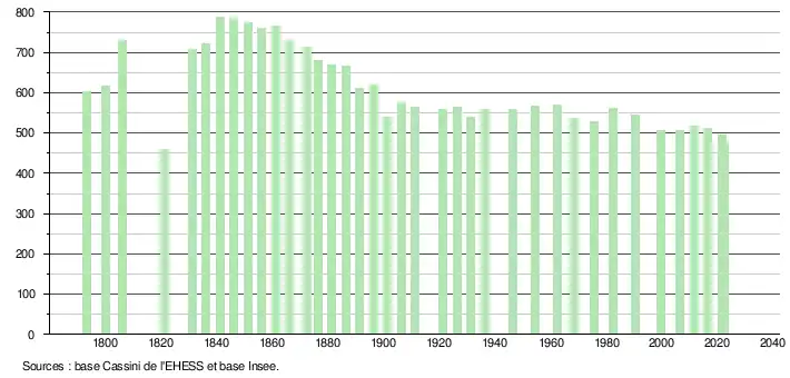 - ↑ Population municipale de référence en vigueur au 1er janvier 2025, millésimée 2022, définie dans les limites territoriales en vigueur au 1er janvier 2024, date de référence statistique : 1er janvier 2022.