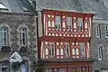 Maison en pans de bois entièrement recouverte en ardoises dont la disposition forme des dessins, et comportant deux étages en encorbellement l'un sur l'autre. La sablière du plancher du deuxième étage est moulurée et ornée de godrons. La façade principale en pan-de-bois était autrefois recouverte d'ardoises. Une restauration récente a restitué la structure et le décor de celui-ci. La sablière du plancher du deuxième étage est moulurée et ornée de godrons[1].