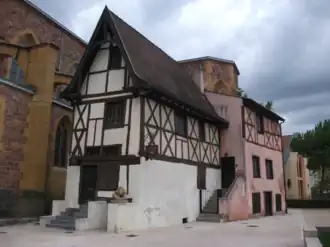 Elle est facilement reconnaissable avec ses colombages et jouxte l'église Saint-Étienne.