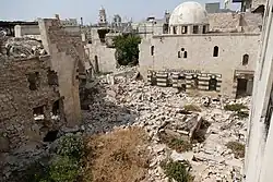 - ↑ Jean-Claude David, « Comment l’histoire explique l’actualité d’Alep (3/3). La destruction du patrimoine culturel de la ville et des monuments dans le conflit en Syrie depuis 2011 : zone ouest et zone est, un patrimoine contrasté - Les clés du Moyen-Orient », sur www.lesclesdumoyenorient.com, (consulté le )
