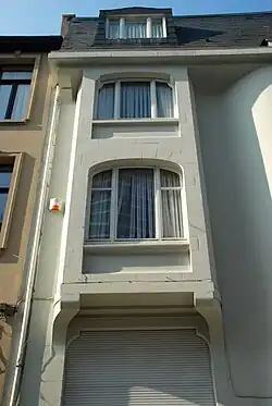 Les éléments d'inspiration Art nouveau sont l'oriel, ses consoles et la console supportant la tour d'angle.