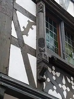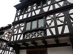 Cette maison à colombages alsacienne typique de quatre étages, de la fin du Moyen Âge et du début de la Renaissance (architecture de la Renaissance) est construite avec un premier étage en encorbellement, avec oriel, fenêtres à croisée à meneaux et à vitraux, et toit en tuile alsacienne[3].