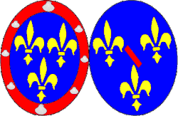 - ↑ Hervé Pinoteau, Héraldique capétienne, Paris, Éditions Patrice de La Perrière, (1re éd. 1954), 139 p. (ISBN 2863770040 (édité erroné), BNF 36599636), p. 41.