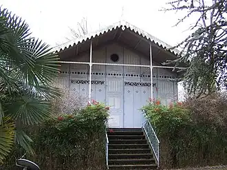 Après l'exposition, elle fut installée dans une propriété qui surplombe les vallées de l'Yvette et du ru des Vaux de Cernay. Cet emplacement fait une grande place à la notion de paysage, chère au parc qui l'entoure, typique des aspirations paysagistes du XIXe siècle, évoque une ambiance où se mêlent exotisme et romantisme avec une flore « d'outremer » comme un cèdre et des cactées ainsi qu'une grotte.