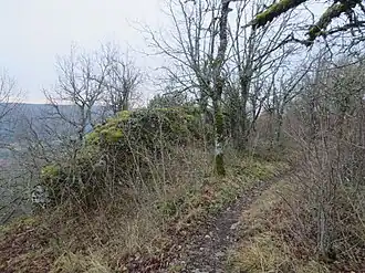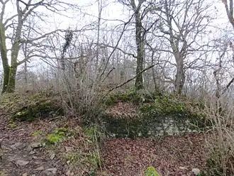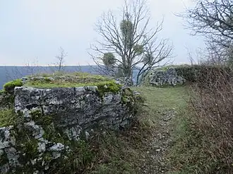 Les ruines du château sont derrière, celles de St-Vivant devant et en contrebas.