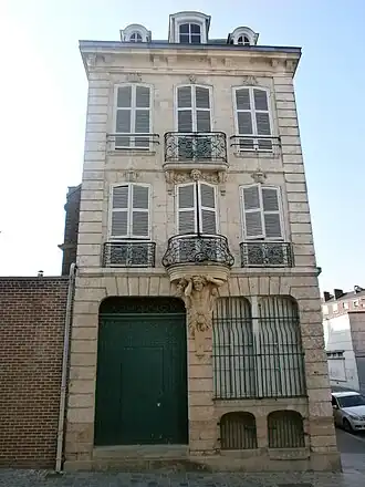 Au centre du premier étage, Jean-Baptiste Dupuis, beau-père de Christophle, sculpta un atlante, couvert d'une peau de lion, maintenant sur son dos avec ses mains le balcon semi-ovale, et se mordant les lèvres du fait de l'effort.