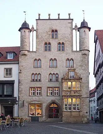 - (de) Cet article est partiellement ou en totalité issu de l’article de Wikipédia en allemand intitulé « Tempelhaus (Hildesheim) » (voir la liste des auteurs).
