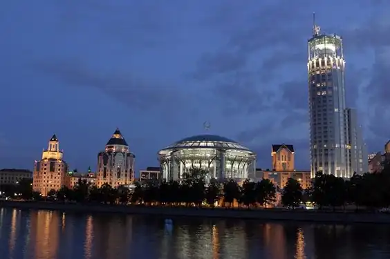 Philharmonique National de RussieLa Maison internationale de la musique de Moscou ou Maison de la musique (Dom Muzyki) est un équipement culturel situé à Moscou regroupant une salle de concert de 1 735 places, une salle de 575 places et un théâtre de 532 places. L'ensemble inauguré en 2003 constitue la salle attitrée du Philharmonique National de Russie, une nouvelle formation symphonique moscovite créée pour jouer dans la salle.