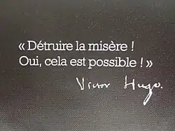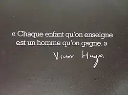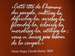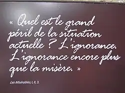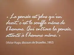 « Victor Hugo est né dans cette maison le 26 février 1802. Cette dédicace dévoilée le 25 février 2002 rappelle au XXIe siècle l'actualité des idéaux et des combats politiques du plus célèbre écrivain de France. Je veux les peuples grands, je veux les hommes libres. »