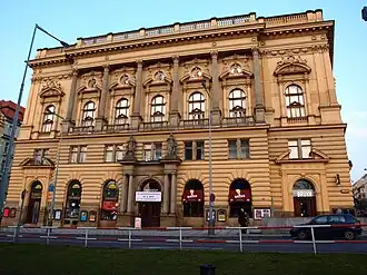 - ↑ (cs) « Národní dům (Ústřední kulturní dům železničářů, náměstí Míru) », sur Atlas Česka (consulté le ).