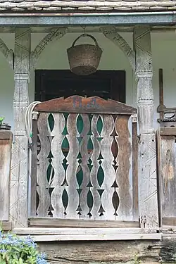 À l'origine, la maison était dotée d'une riche décoration florale ; les piliers en bois du porche sont encore richement ornés[1].