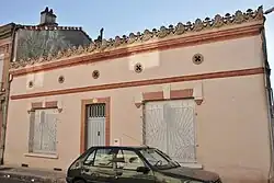 Une petite moulure, appelée listel, soulignait le niveau du galetas sous toiture, espace réduit peu utilisé. Une corniche plus importante en briques, parfois soulignée d'un bandeau de céramique, marquait l'avancée de la toiture. Parfois un chéneau courait en haut du mur gouttereau, masqué par une frise d'acrotères et antéfixes en terre cuite, manufacturés par la fameuse fabrique des Virebent.
