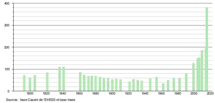 L'évolution du nombre d'habitants est connue à travers les recensements de la population effectués dans la commune depuis 1793. Pour les communes de moins de 10 000 habitants, une enquête de recensement portant sur toute la population est réalisée tous les cinq ans, les populations de référence des années intermédiaires étant quant à elles estimées par interpolation ou extrapolation[1]. Pour la commune, le premier recensement exhaustif entrant dans le cadre du nouveau dispositif a été réalisé en 2004[2].