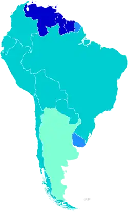 Les lois des différents pays encadrent le type d'activité sexuelle (vaginale, sodomie, fellation) ainsi que le sexe des participants. L'âge à partir duquel une personne peut avoir des relations sexuelles sans être en infraction avec la loi apparaît en gras dans le texte. Cet âge est valable pour les deux sexes. D'autres variables comme l'homosexualité et/ou la sodomie, lorsqu'elles sont illégales, sont signalées si elles sont importantes. Lorsqu'il existe un/des cas particulier(s) propre(s) aux pays, il est/sont indiqué(s). Il est à noter que le seul pays d'Amérique du Sud où l'homosexualité masculine est illégale est la Guyana. D'autres pays comme Le Chili et le Suriname imposent un âge de majorité sexuelle plus élevé pour les relations homosexuelles.