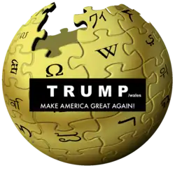Pour le poisson d'avril de 2016, le Wikipédia anglophone annonce que le candidat Donald Trump a choisi le cofondateur de l'encyclopédie libre, Jimmy Wales, comme vice-président et modifie le logo pour l'occasion. Ce dernier sera réutilisé tel quel après l'élection présidentielle américaine de novembre 2016 sur le Wikipédia francophone pour son canular du [source secondaire souhaitée].