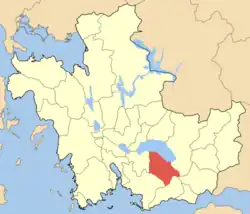 - (el) Cet article est partiellement ou en totalité issu de l’article de Wikipédia en grec moderne intitulé « Δήμος Μακρυνείας » (voir la liste des auteurs).