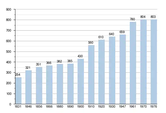- Sources : INS, Rem. : 1831 jusqu'en 1970 = recensements, 1976 = nombre d'habitants au 31 décembre[2].