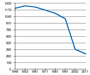 | 1 202 | 1 252 | 1 226 | 1 165 | 1 108 | 998 | 392[2] | 303[1] |