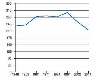 - 1 2 (sr + en) « Livre 20 : Vue d'ensemble comparative de la population en 1948, 1953, 1961, 1971, 1981, 1991, 2002 et 2011, données par localités) » [PDF], pages du recensement de 2011 en Serbie - Institut de statistique de la république de Serbie, (consulté le )