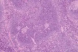 Vue au microscope montrant l'expansion caractéristique de la zone du manteau du ganglion.