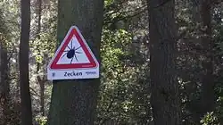 - en Europe, la tique Ixodes Ricinus peut aussi transmettre Anaplasma phagocytophilum et Babesia microti agent de la babésiose, et aussi l'encéphalite à tique (due à un virus)[32],[33] ;
